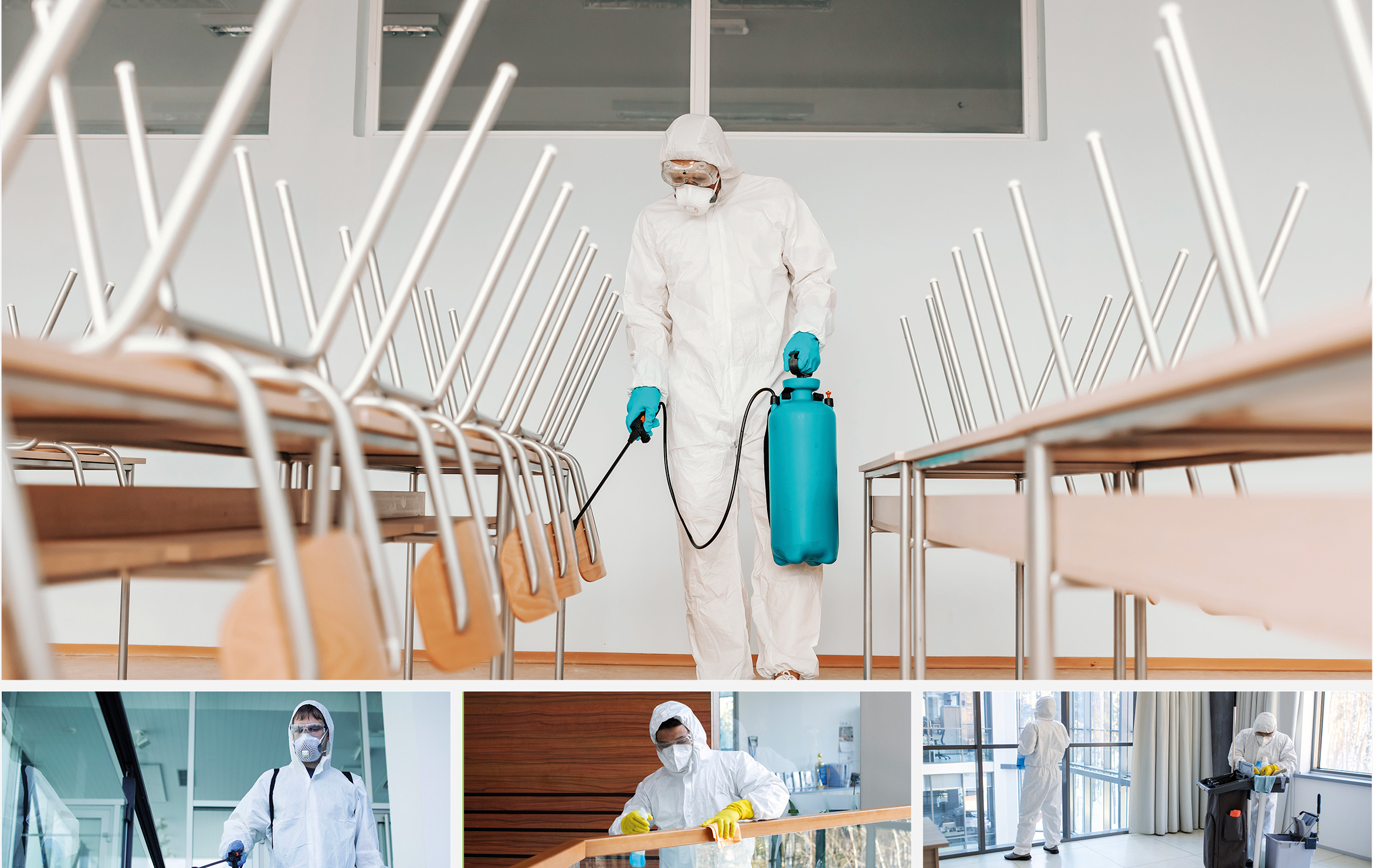 Fabrika veya işletmelerde geniş alanların, ekipmanların ve havalandırma sistemlerinin temizlenip dezenfekte edilmesi.